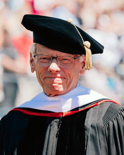 Mark Levett ’71, 40-year member and retiring chair of the Hanover Board of Trustees, was presented with an honorary Doctor of Humane Letters. Levett, a retired executive at Cummins Inc., is only the 11th person to serve the College’s board for 40 or more years. He was elected vice-chair in 1998 and has served as chair since 2014.