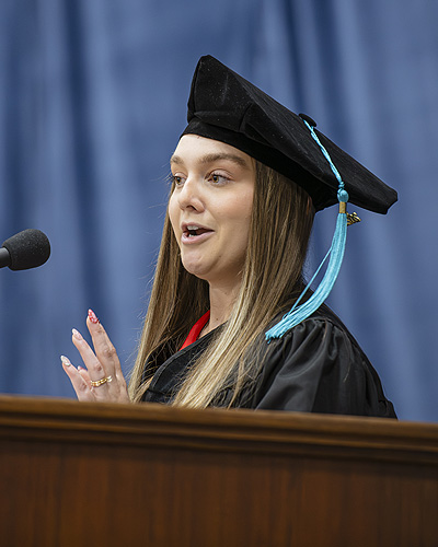 The graduation featured a student address from Alexandra Carmen Menendez DPT ’25, a native of Colorado Springs, Colo., who encouraged her classmates to stay human, humble and hungry.